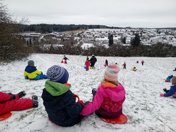 Wie auf dem Weihnachtsmarkt erzählten wir auch ihnen die Geschichte des kleinen Volkes in einem Dorf, die immer eine Kerze bei sich trugen und sich gegenseitig Licht und Wärme schenkten. So brachten wir auch zu den Bewohnern des Seniorenzentrums Licht und Wärme und wurden dafür mit Applaus belohnt. Es war beeindruckend, wie sehr die Senioren auf den Gesang der Kinder reagierten und sich die Gesichter aufhellten. Das hat uns besonders gefreut. Wir waren aber auch sehr stolz auf das Durchhaltevermögen unserer Kinder, denn wir erzählten die Geschichte vom Licht in allen drei Wohnbereichen des Hauses. Danach durften wir uns mit Butterbrezeln stärken und sagen allen Mitarbeitern des Seniorenzentrums ein herzliches Dankeschön für den Empfang und die Verpflegung.